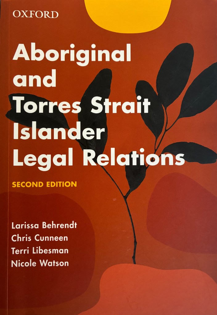 The Aboriginal and Torres Strait Islander Legal Relations, Oxford University Press, 2019. Larissa Behrendt, Chris Cunneen, Terri Libesman and Nicole Watson.